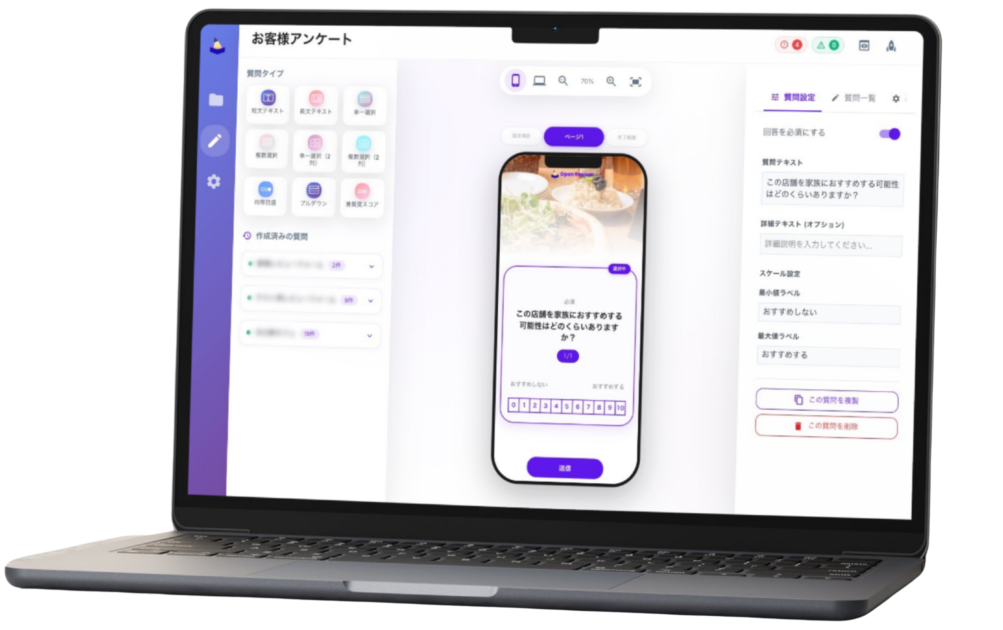 御社のブランド名・ロゴで、取引先の飲食店にアンケート・レポートサービスを展開。開発不要で、自社独自のサービスとしてすぐに提供を始められます。